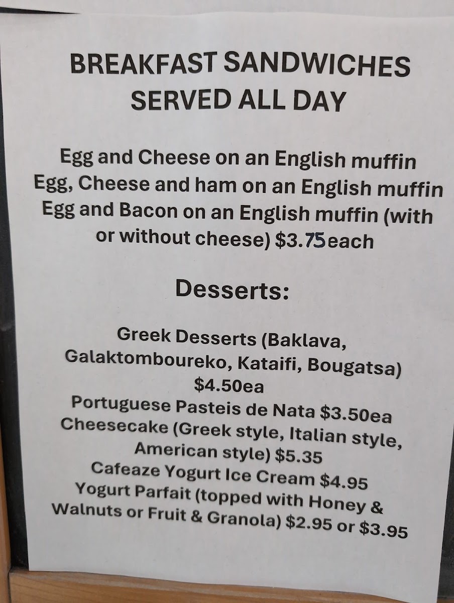 For a savory bite, Cafeaze also serves a variety of snacks and light meals. The Spanakopita offers a flavorful combination of spinach and feta, while the Breakfast Sandwich and Muffins are perfect for a quick meal on the go.